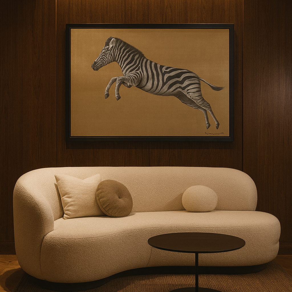 Pieza de arte animal digitalizado montado sobre bastidor de madera. Marco de madera negro.
