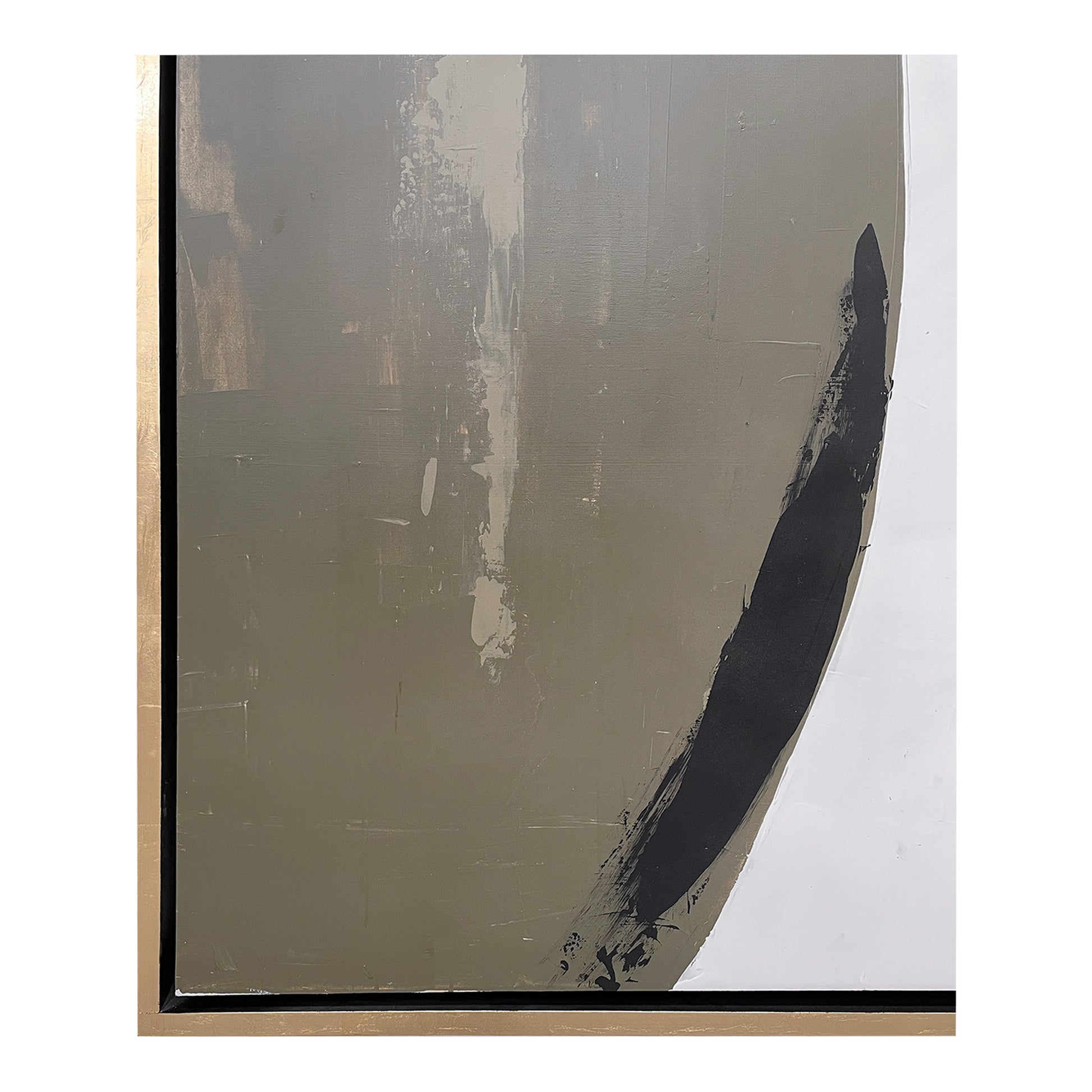 Arte abstracto pintado 100% a mano en técnica mixta montado sobre bastidor de tela con aplicación de acrílicos. Marco de madera cubierto en hoja de oro.