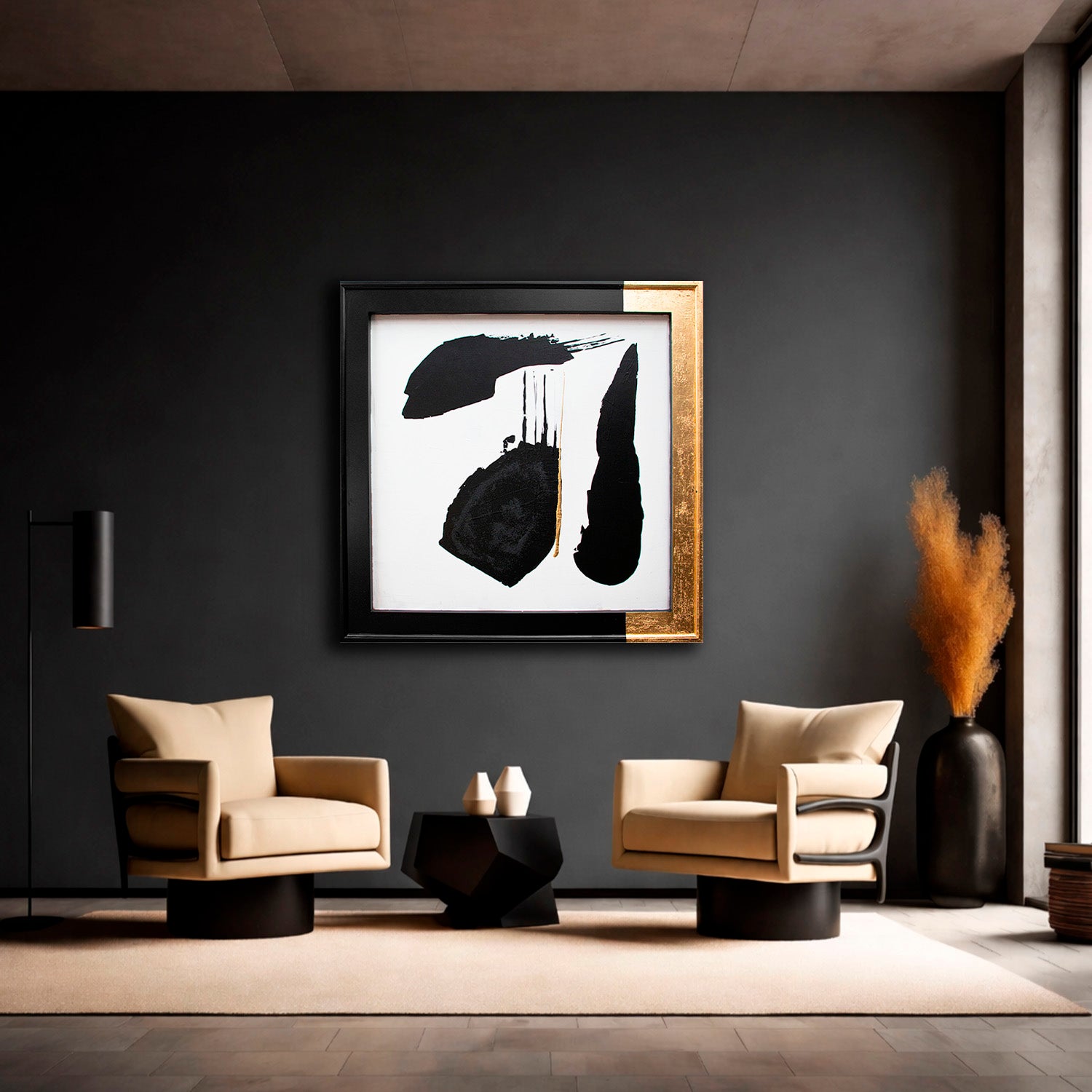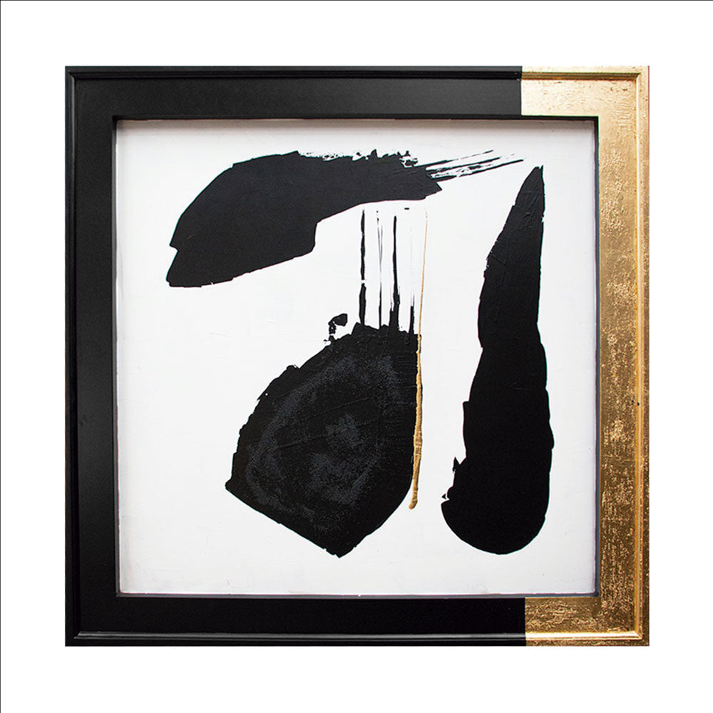 Arte abstracto pintado 100% a mano sobre marco y bastidor de madera estilo francés en técnicas mixta de acrílicos textura y hoja de oro.