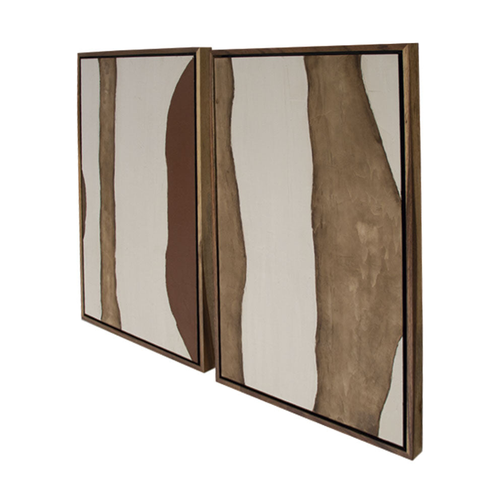 Arte abstracto realizado 100% a mano en técnica mixta de acrílicos y pasta relieve sobre bastidor de madera montado en marco entrecalle parota.