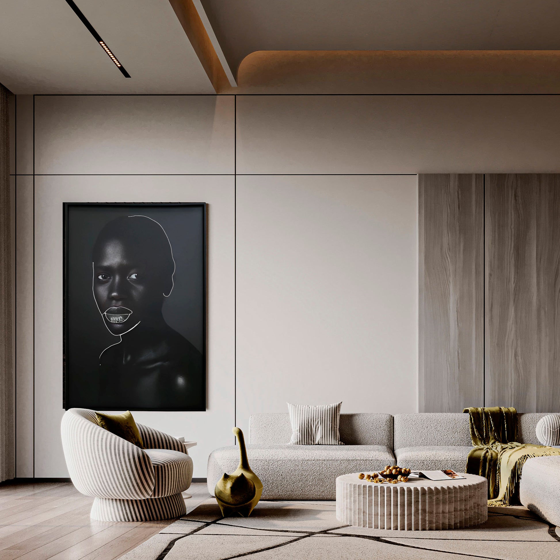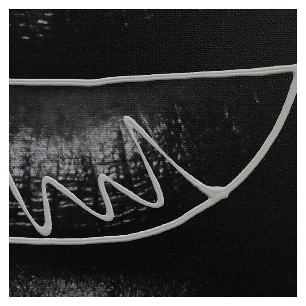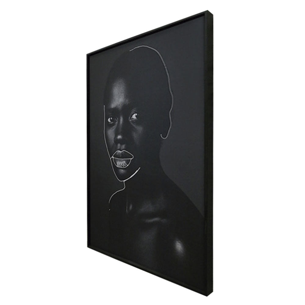 Arte digital con intervención a mano en técnica mixta con marco negro mate.