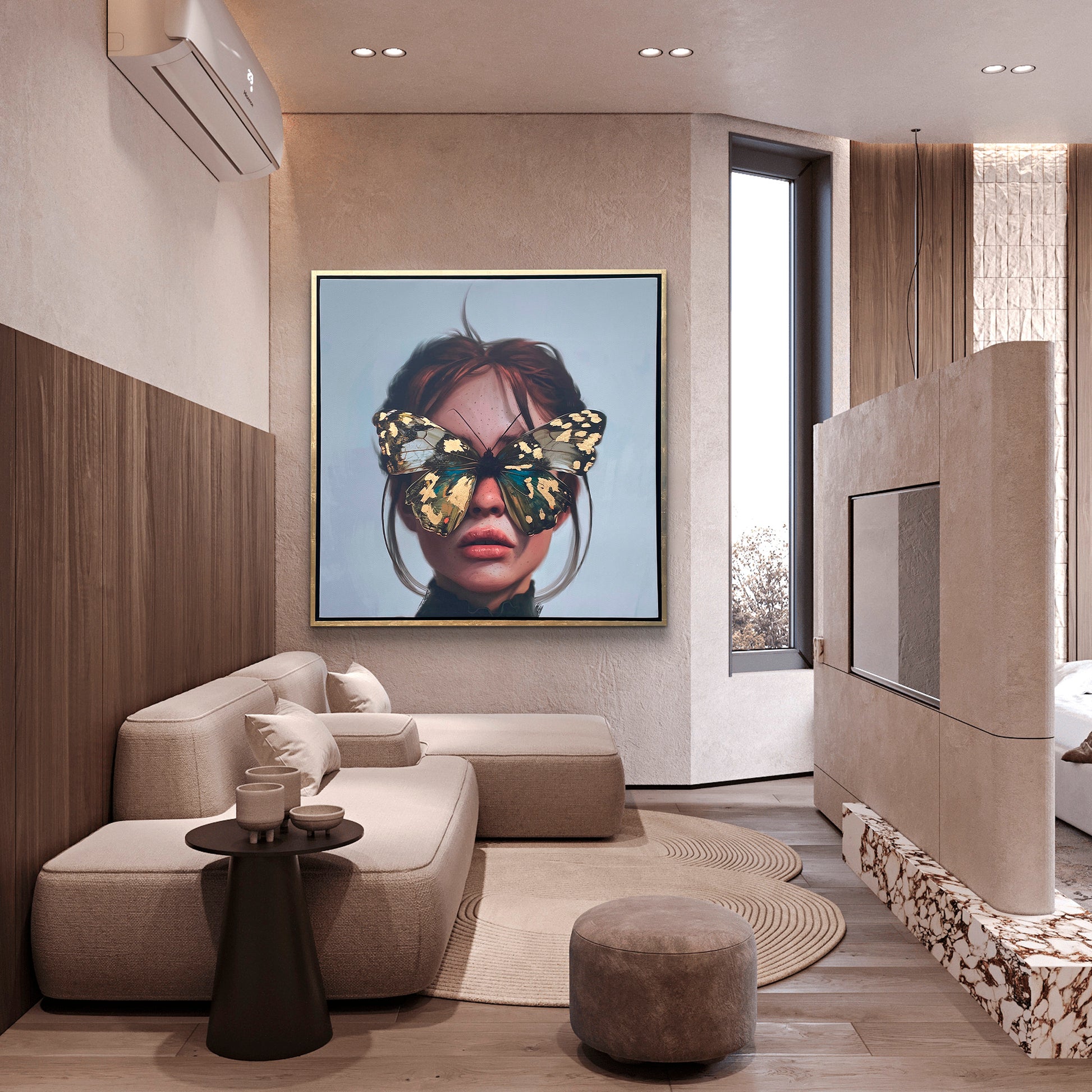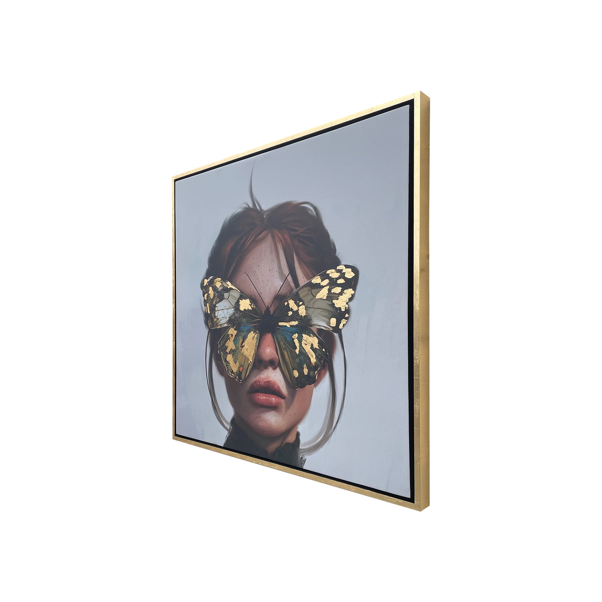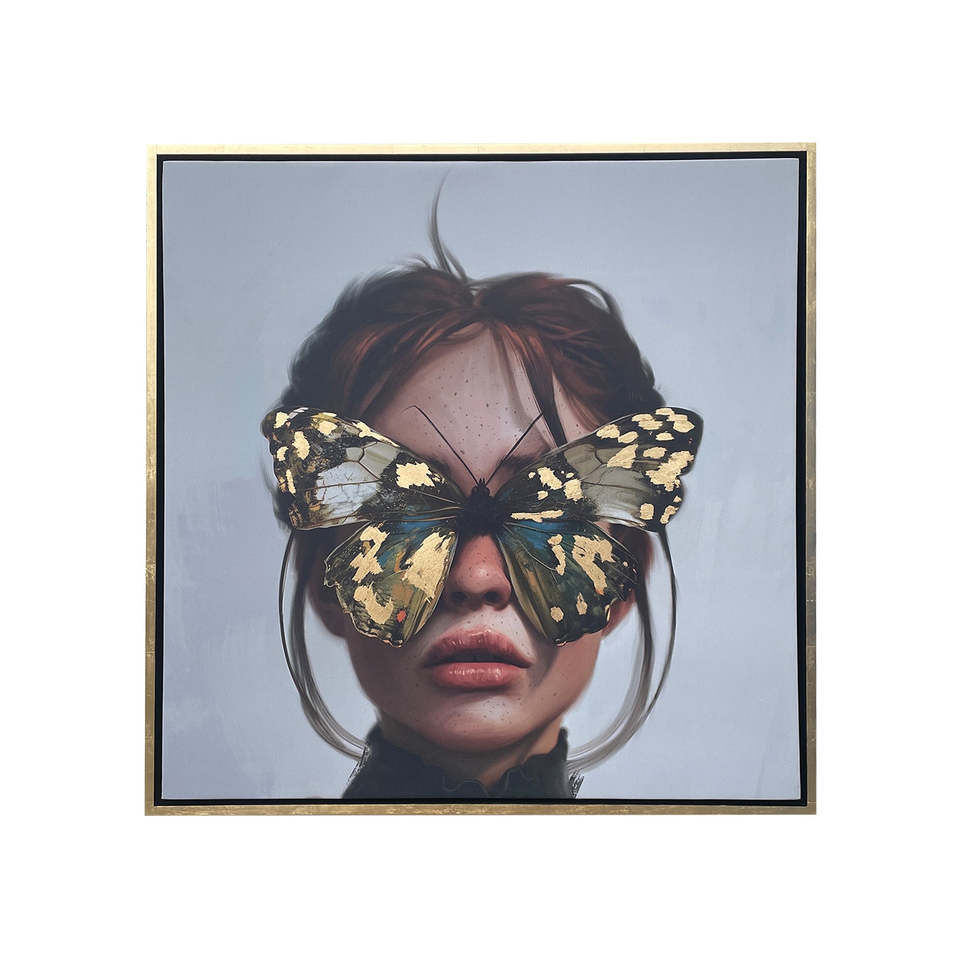 Lienzo de arte abstracto digital en alta resolución montado sobre bastidor de madera con intervención en hoja de oro. Marco de madera cubierto en hoja de oro.