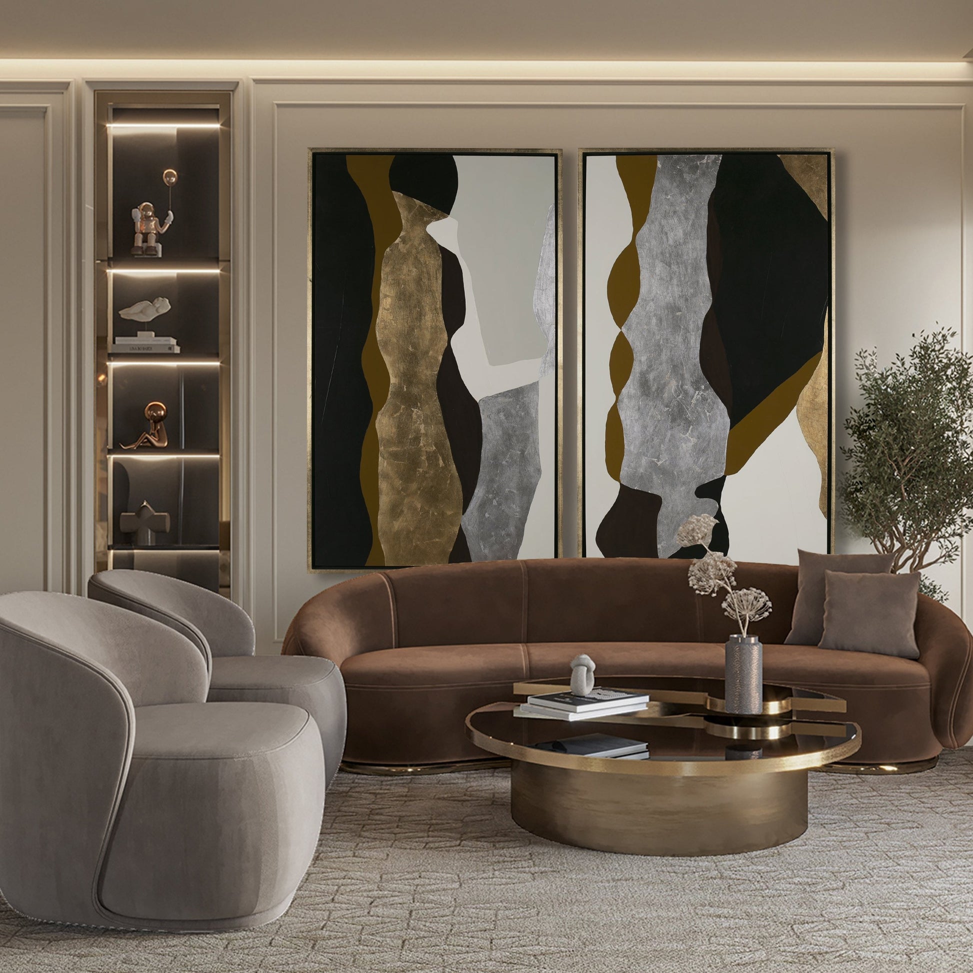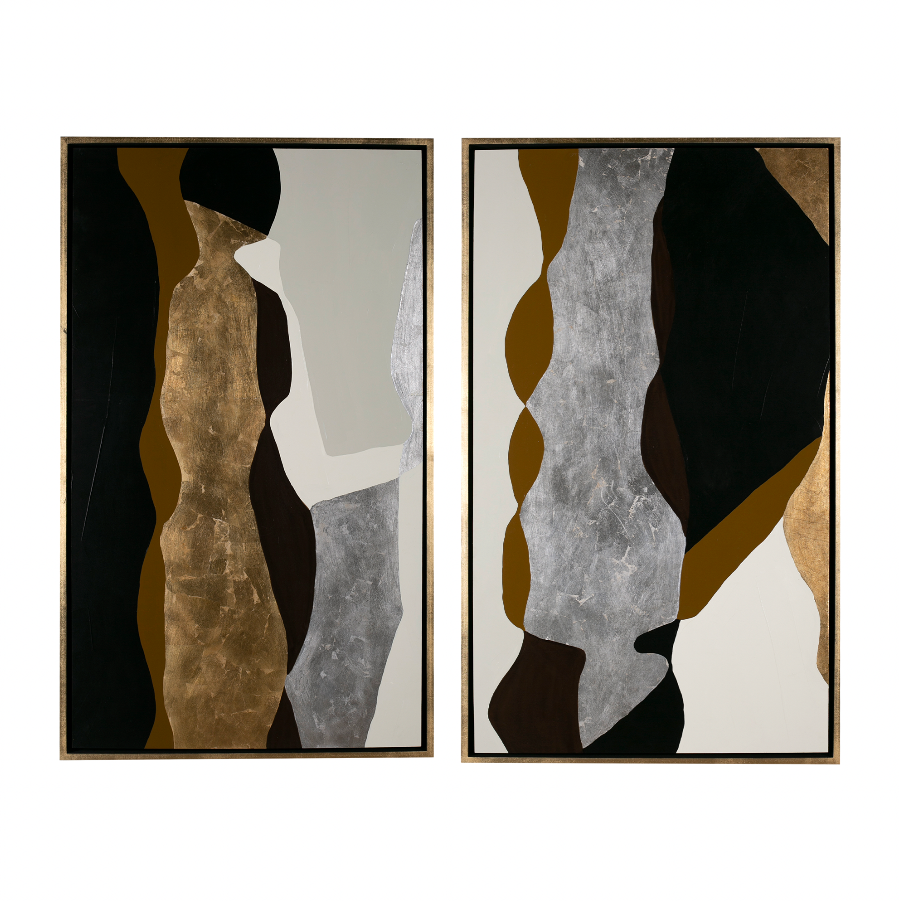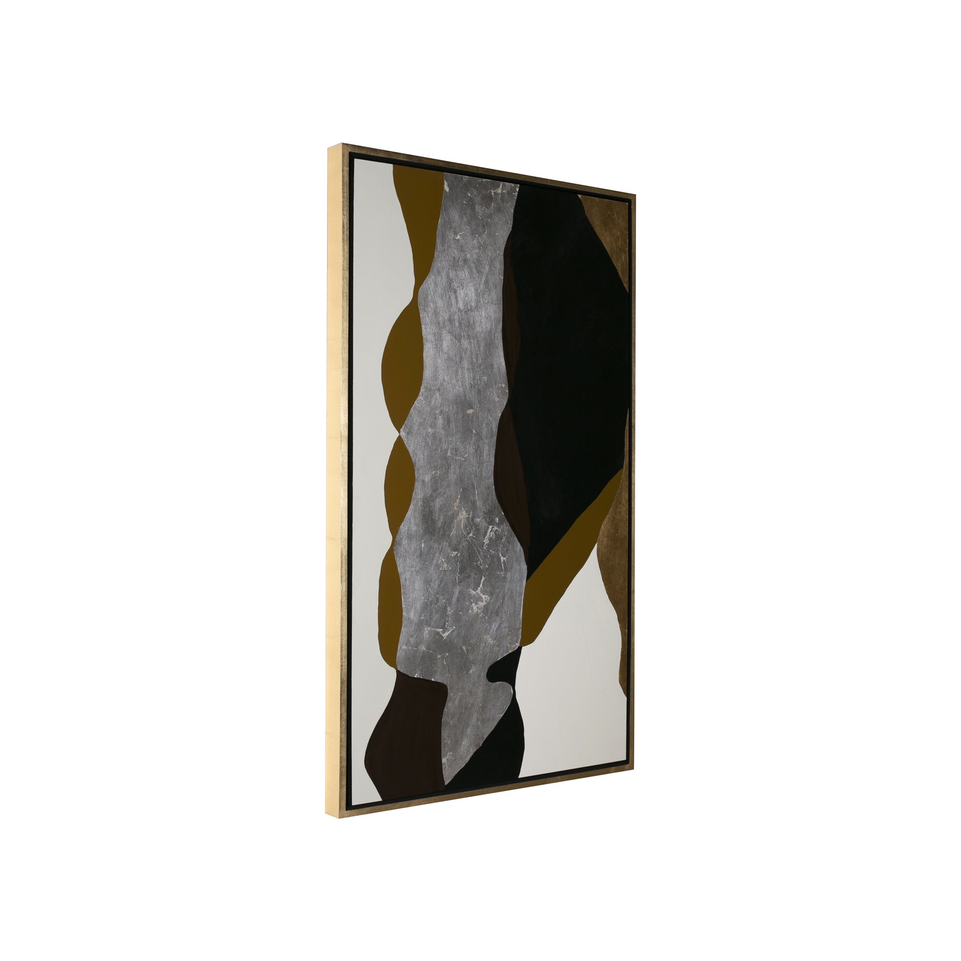Arte abstracto pintado a mano 100% en técnica mixta con acabados en acrílicos, hoja de oro y plata. Marco en hoja de oro.