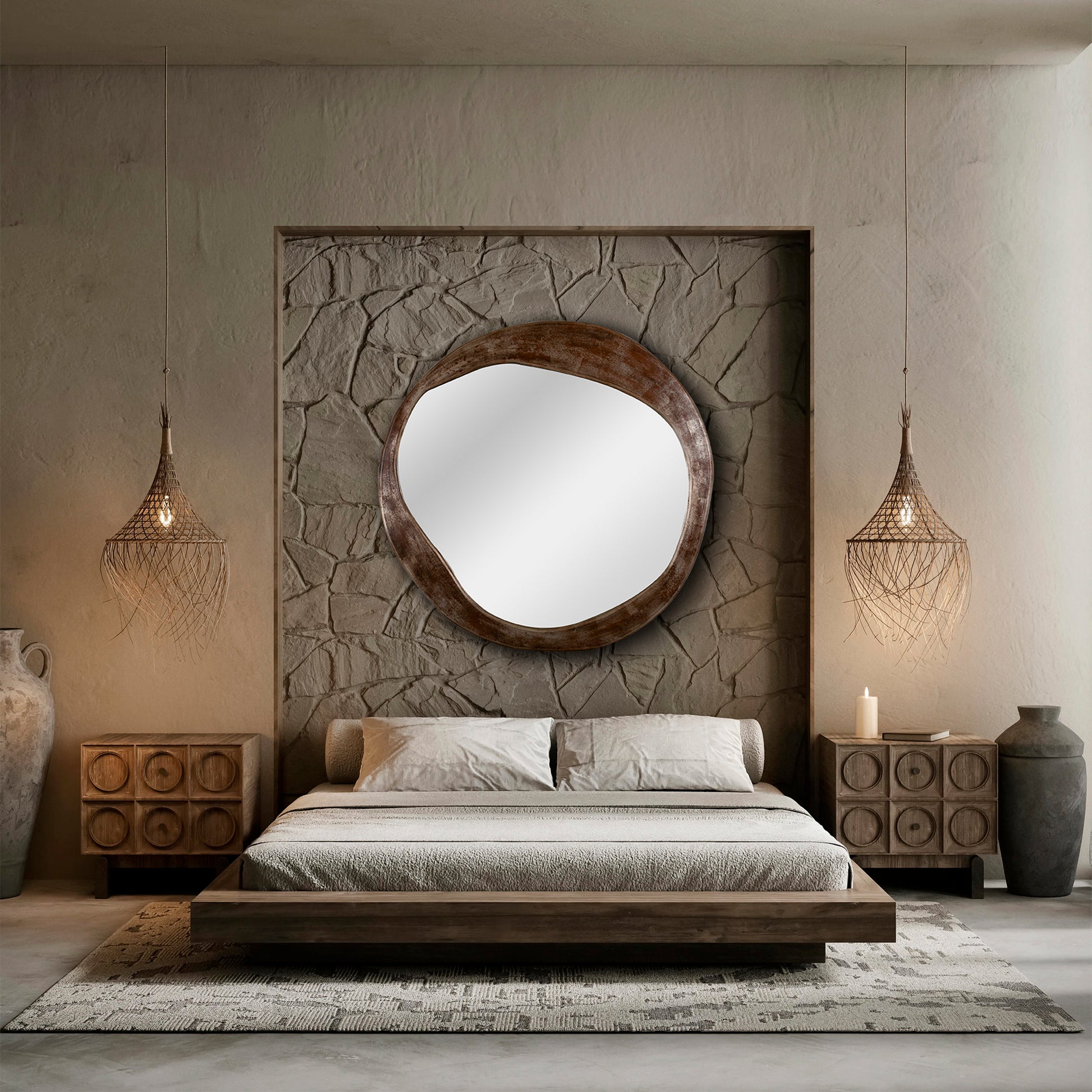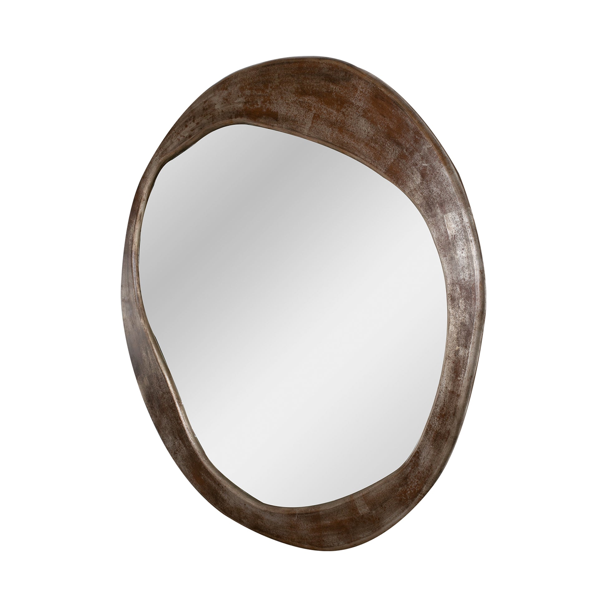 Espejo de piso con moldura de madera irregular cubierto en hoja de plata añejada. Luna de 3 mm.