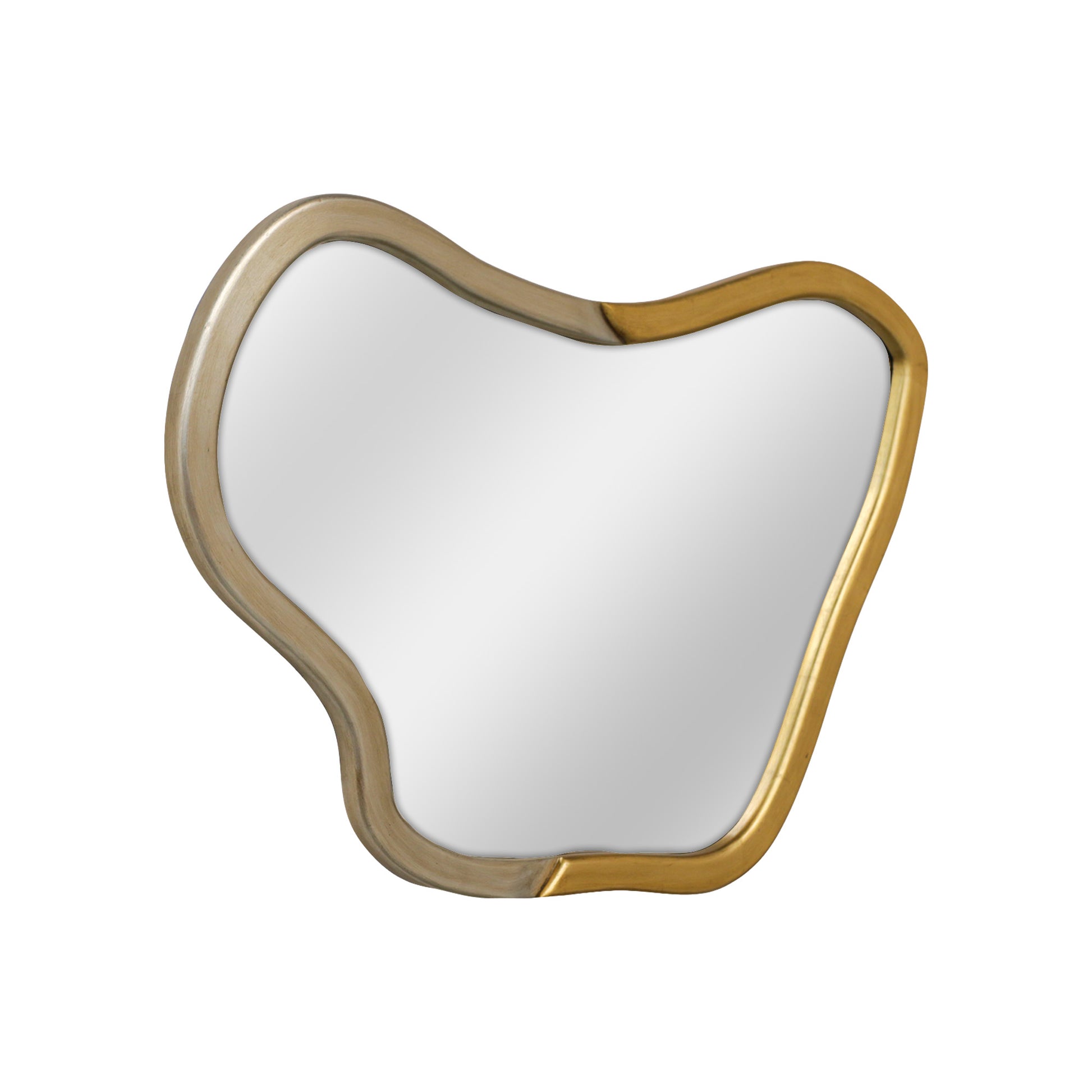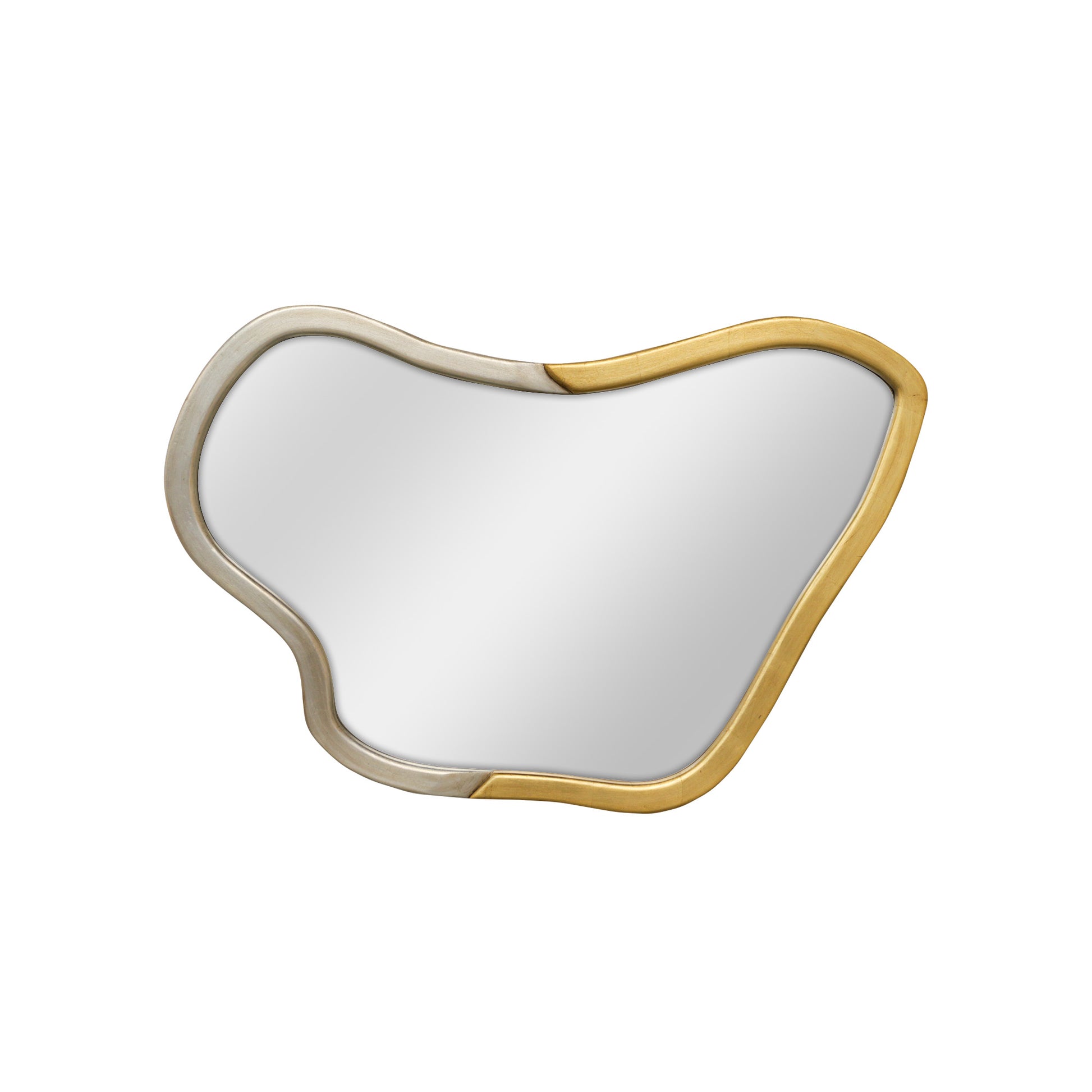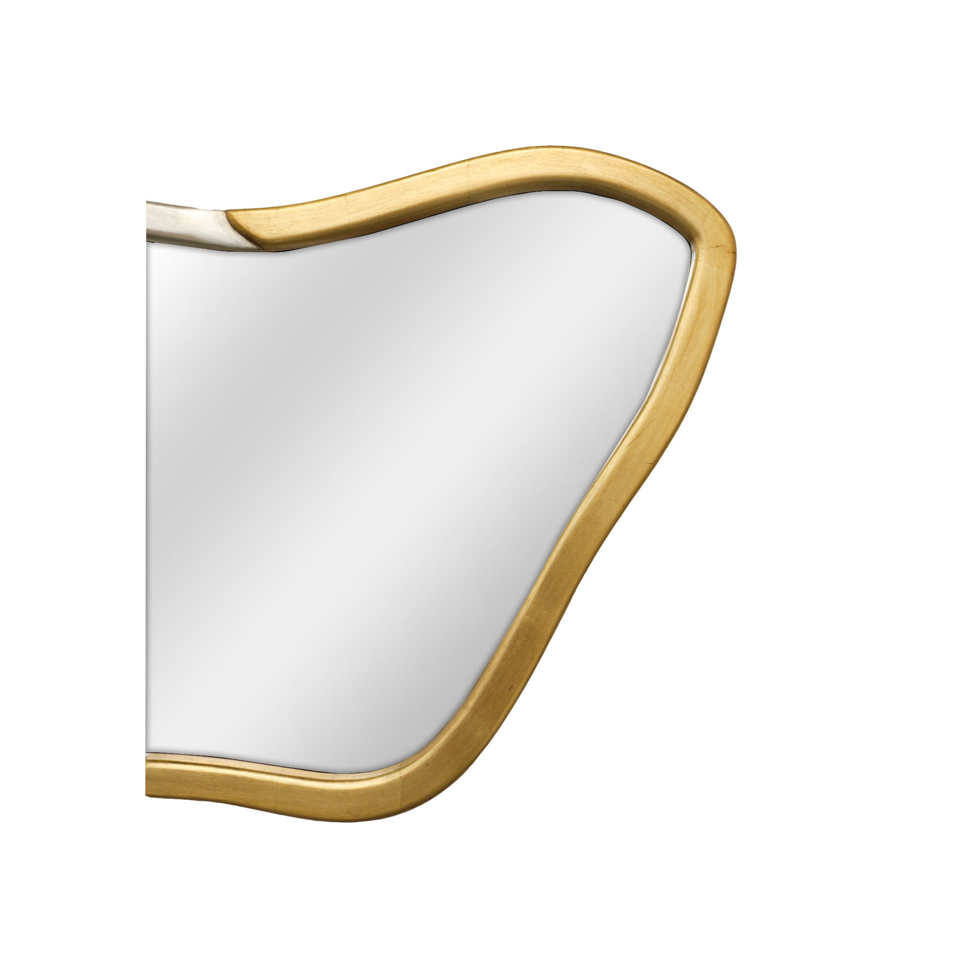 Espejo de pared con estructura de madera , boleado y cubierto en hoja de oro y plata.