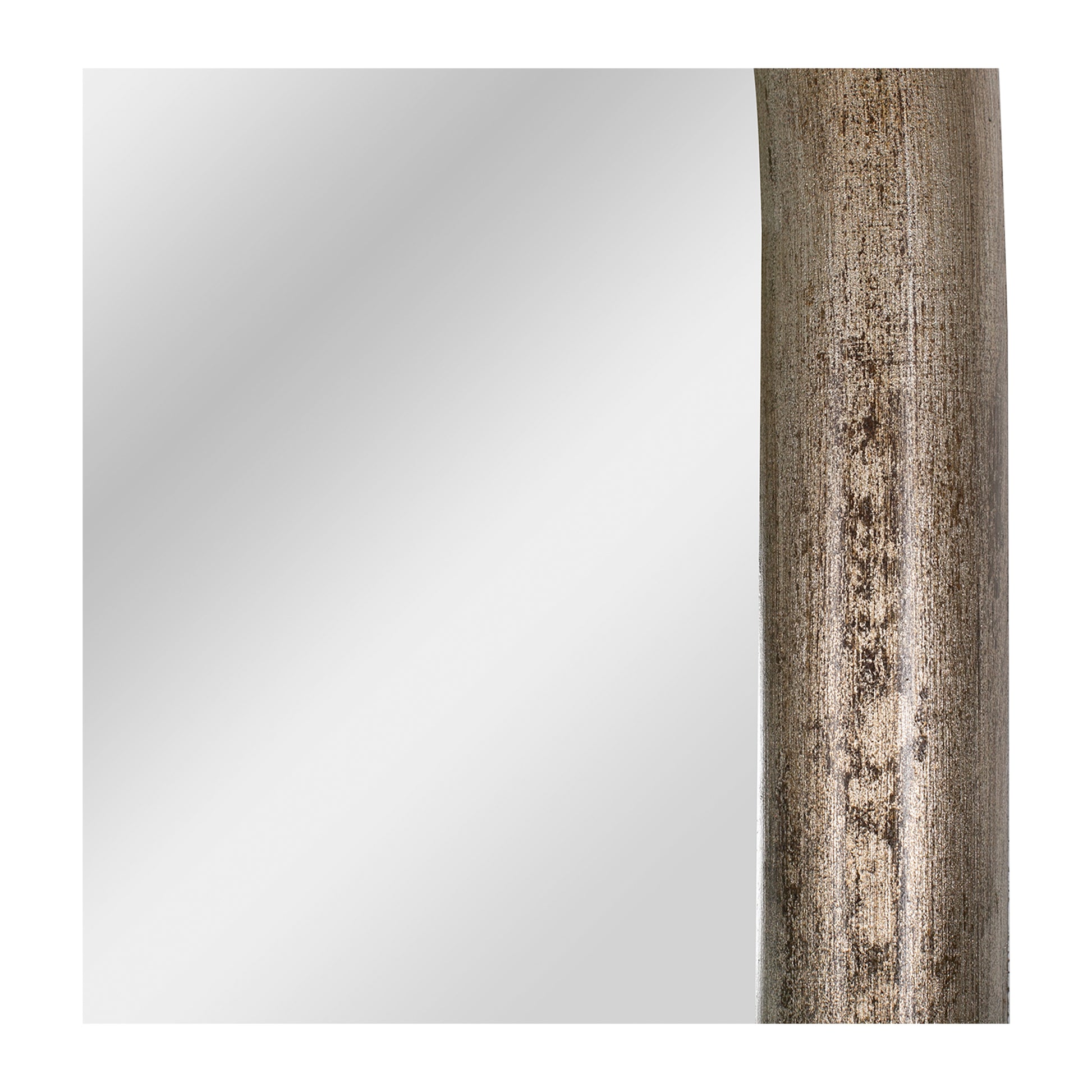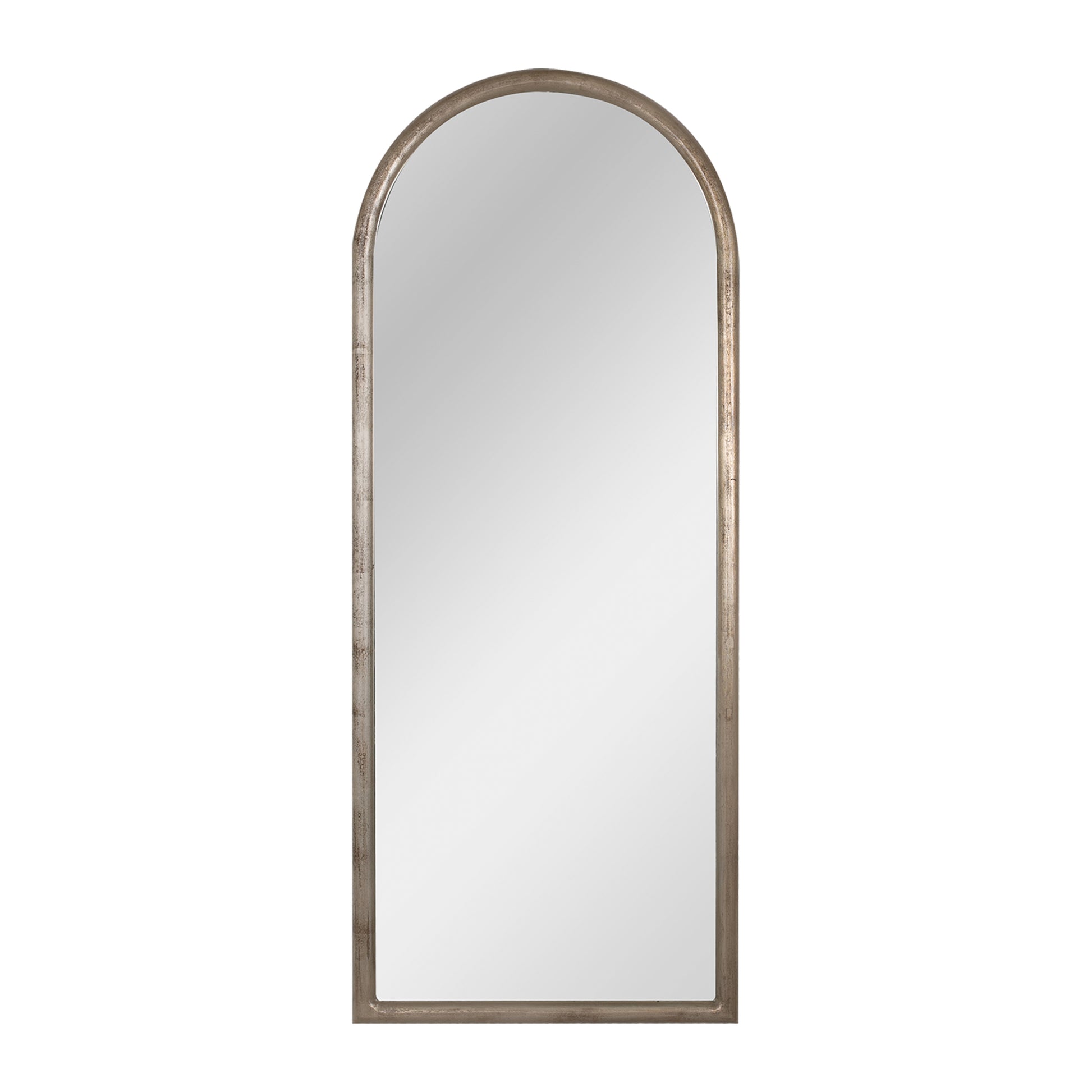 Espejo de piso con moldura de madera cubierto en hoja de plata añejada. Luna de 3 mm.