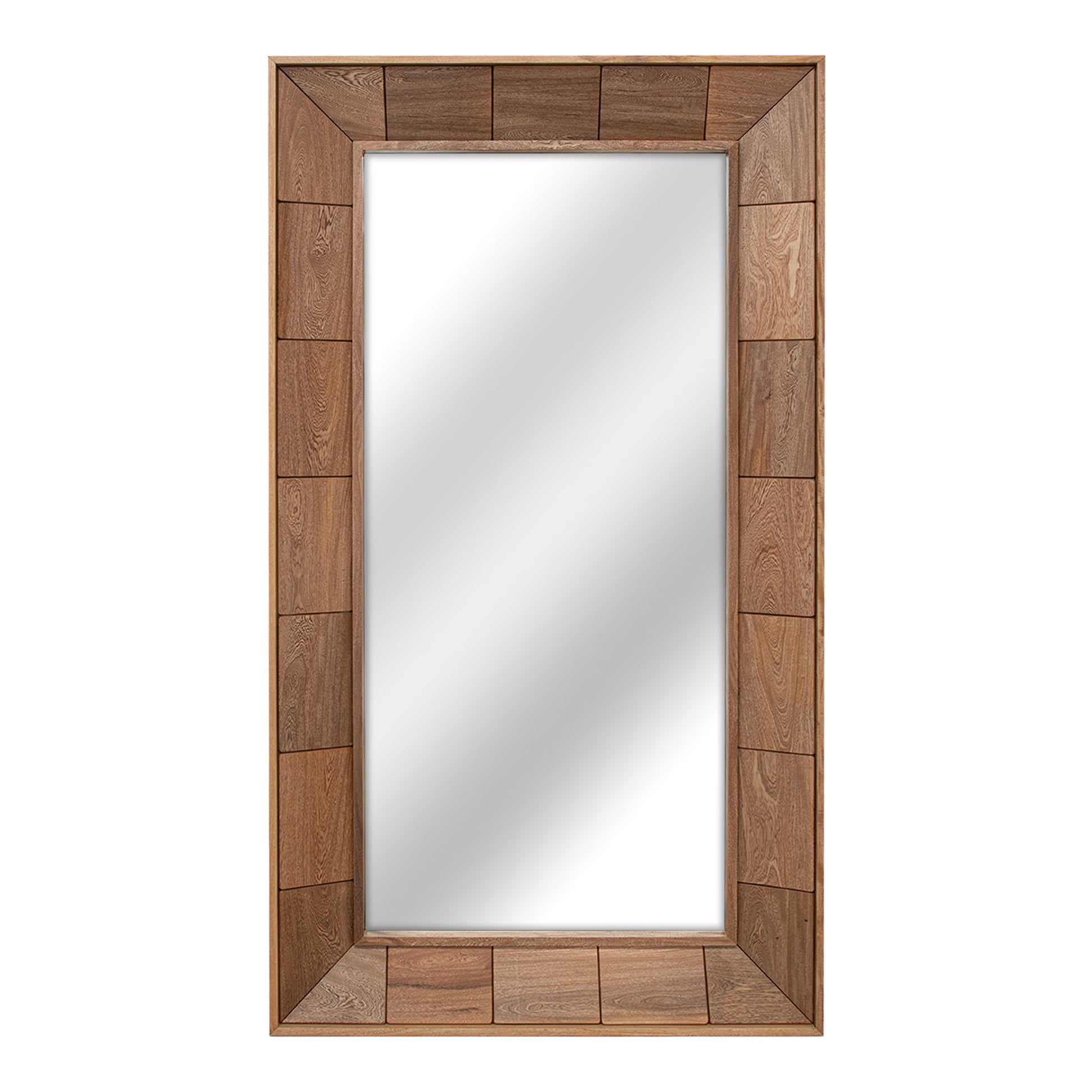 Espejo de piso con estrura de madera rosa morado con aplicaciones boleadas. Luna de 3mm.