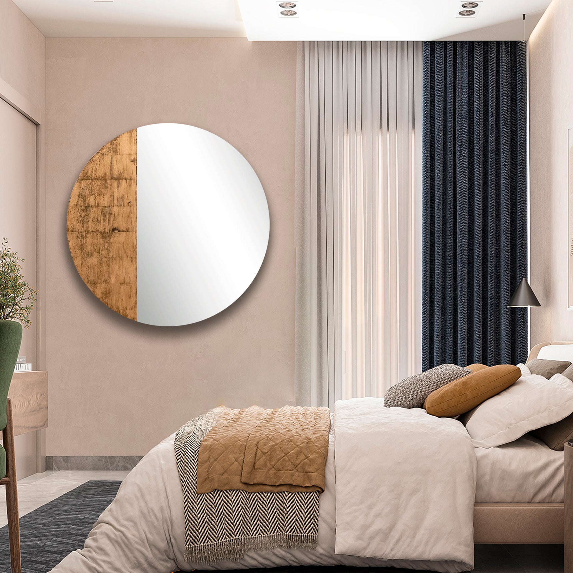 Espejo de pared circular con aplicación de hoja de oro acabado añejao hecho 100% artesanalmente a mano. Luna de 3 mm.