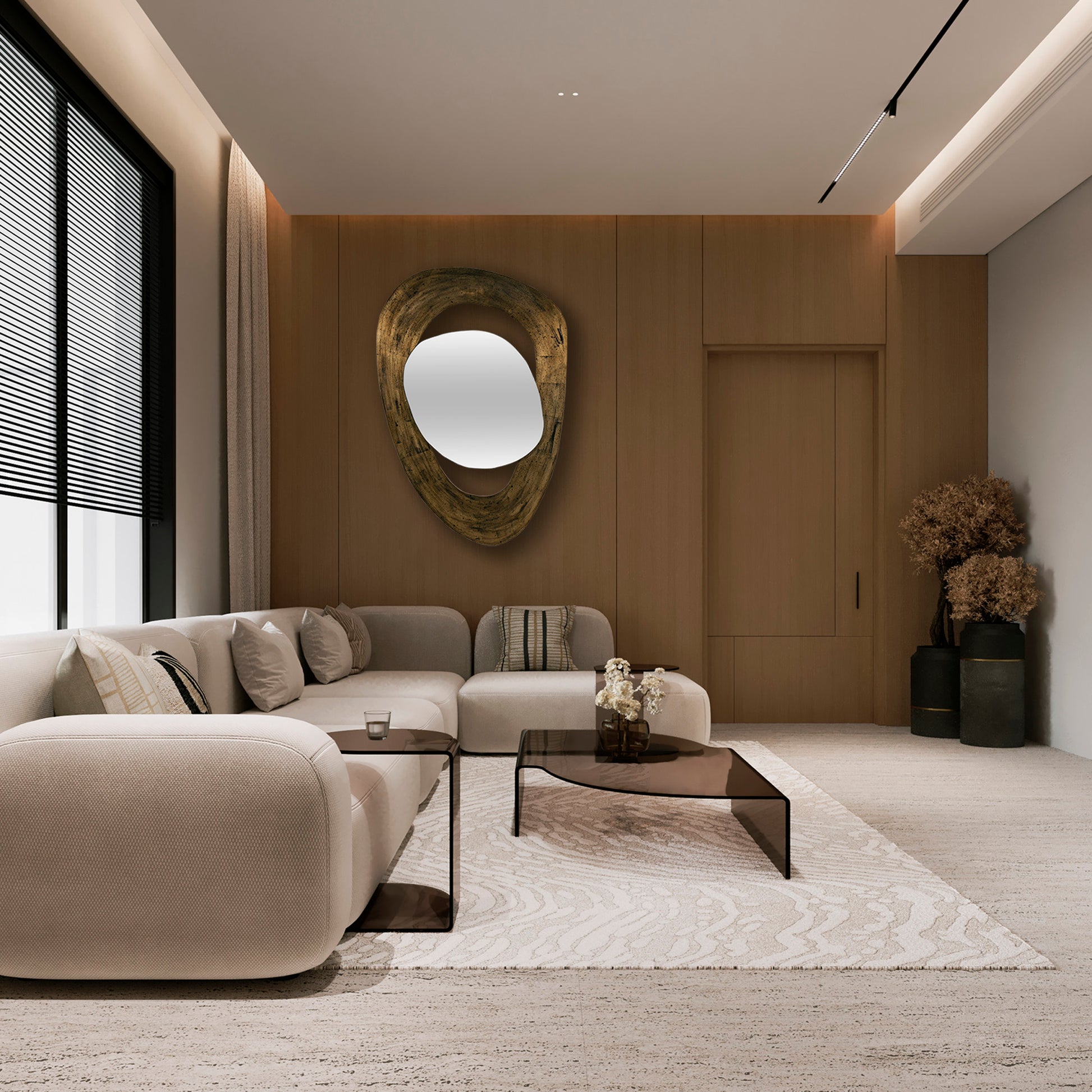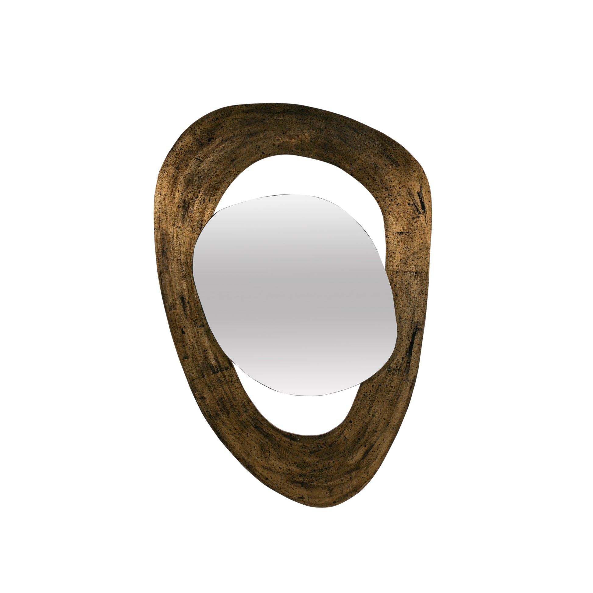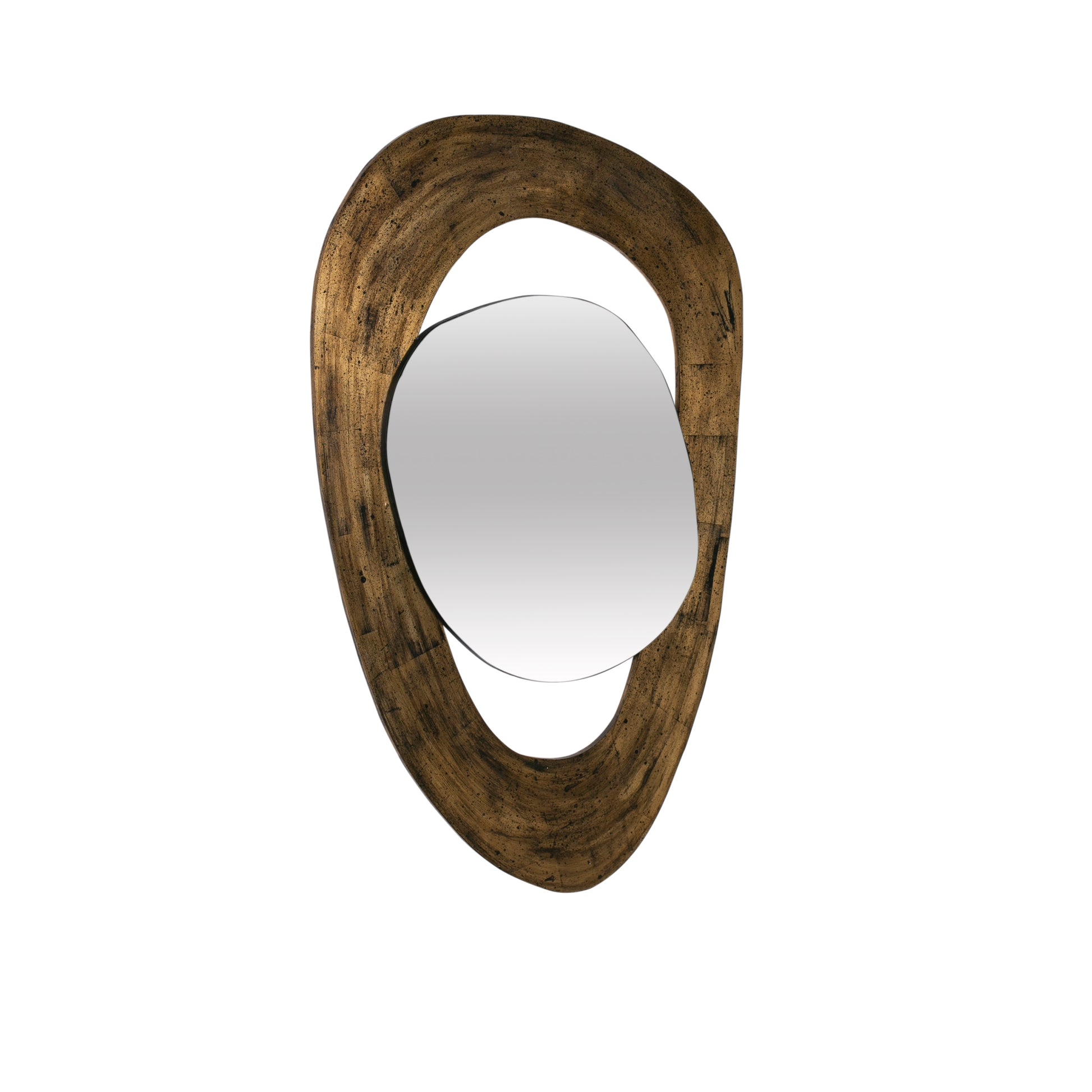 Espejo de pared cubierto en hoja de oro con acrílicos y betún de judea. Luna de 3 mm.