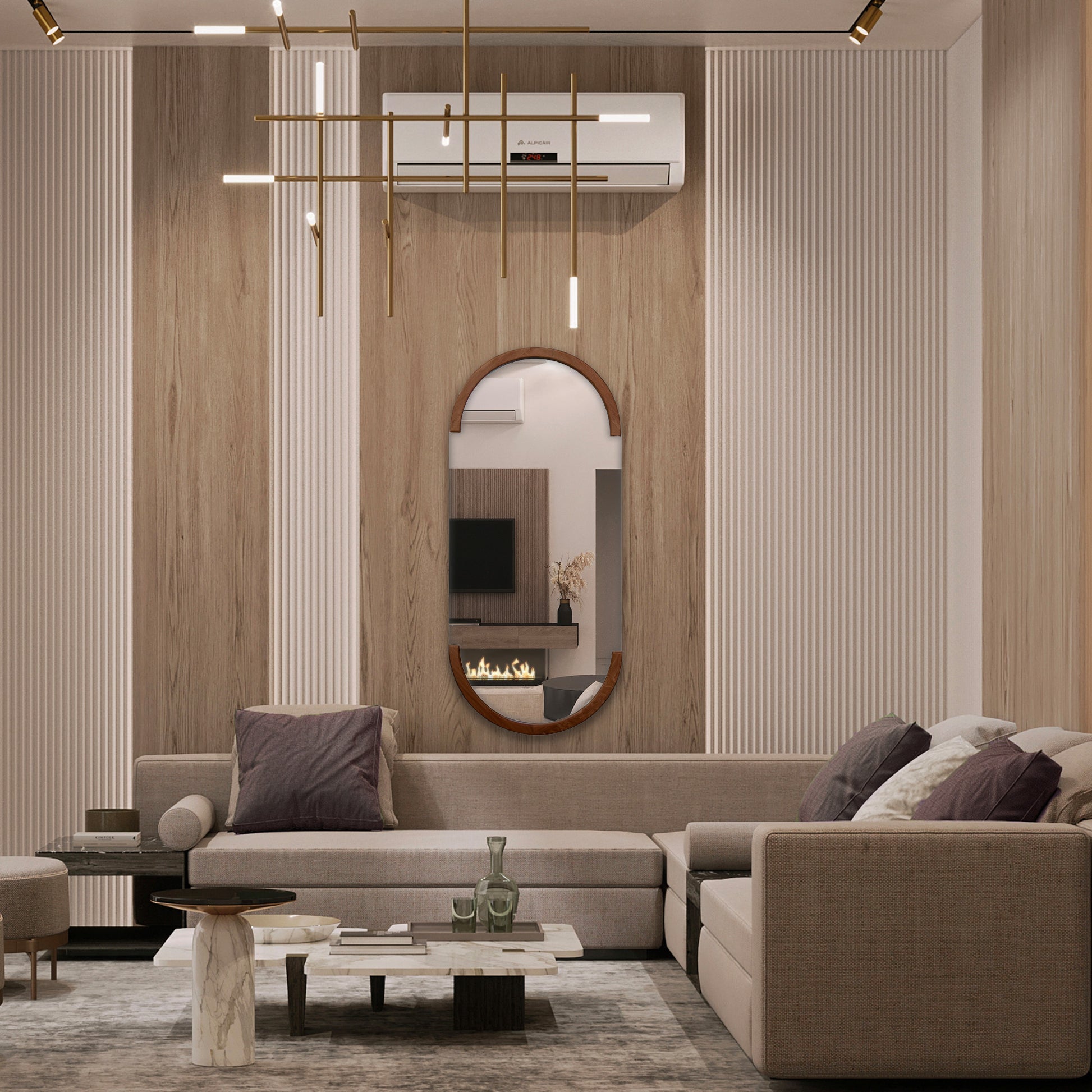 Espejo de piso con moldura superior e inferior de madera de rosa morado. Luna de 3 mm.