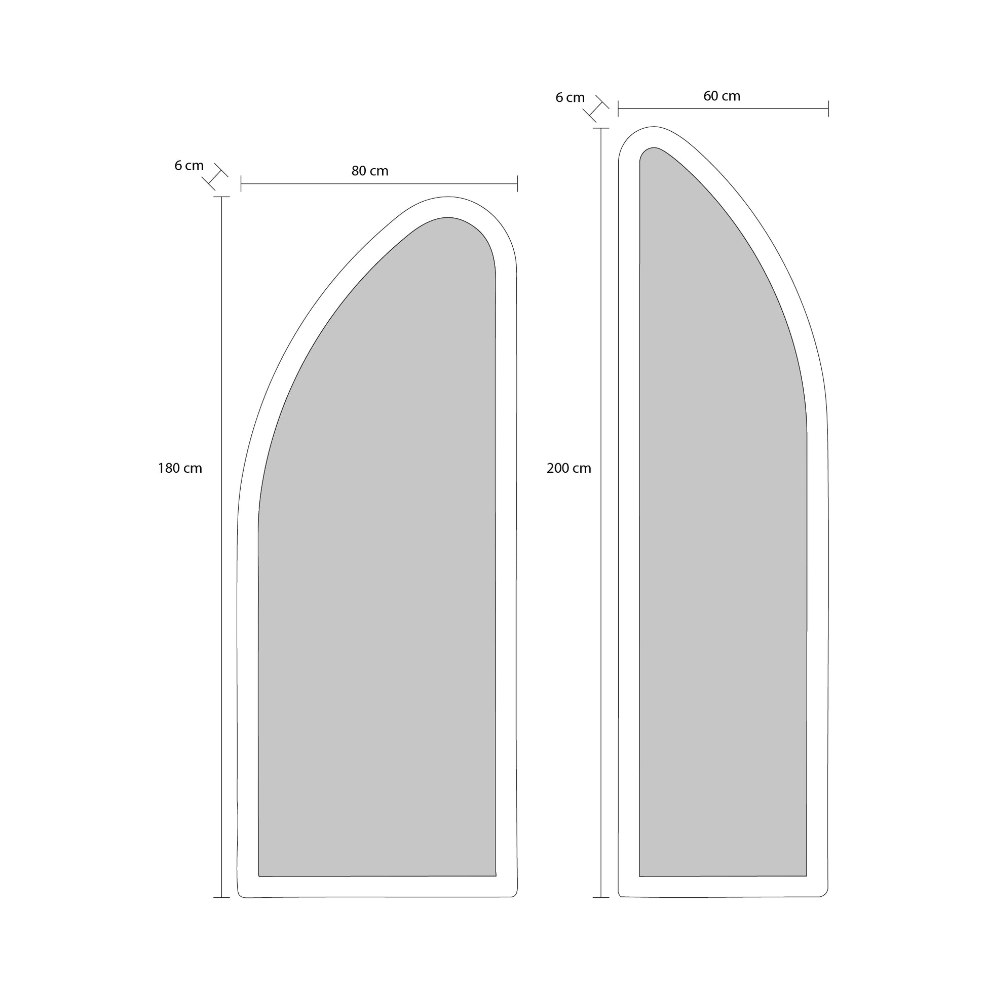 Espejo de piso en madera sólida de rosa morado boleada. Luna de 3 mm.