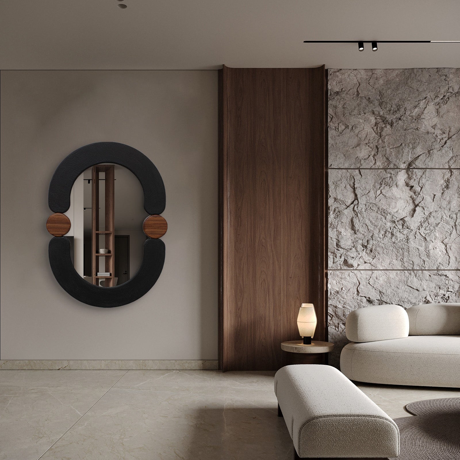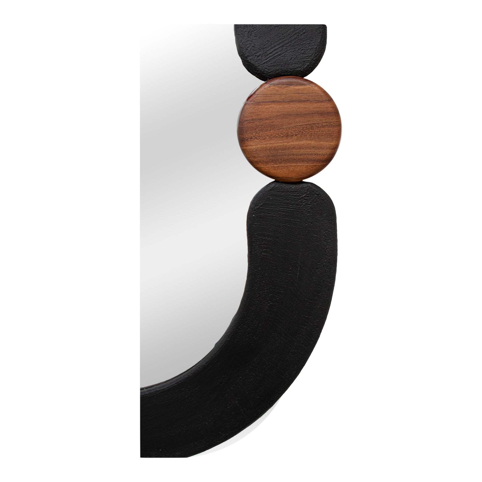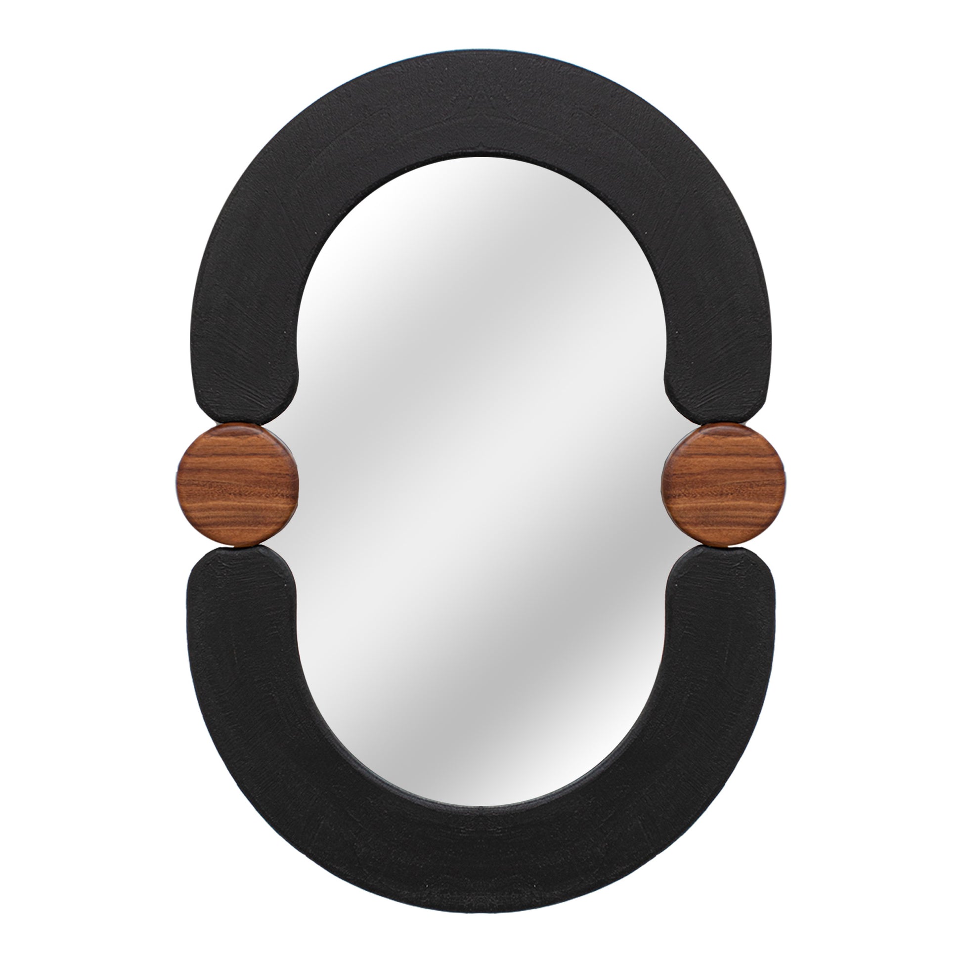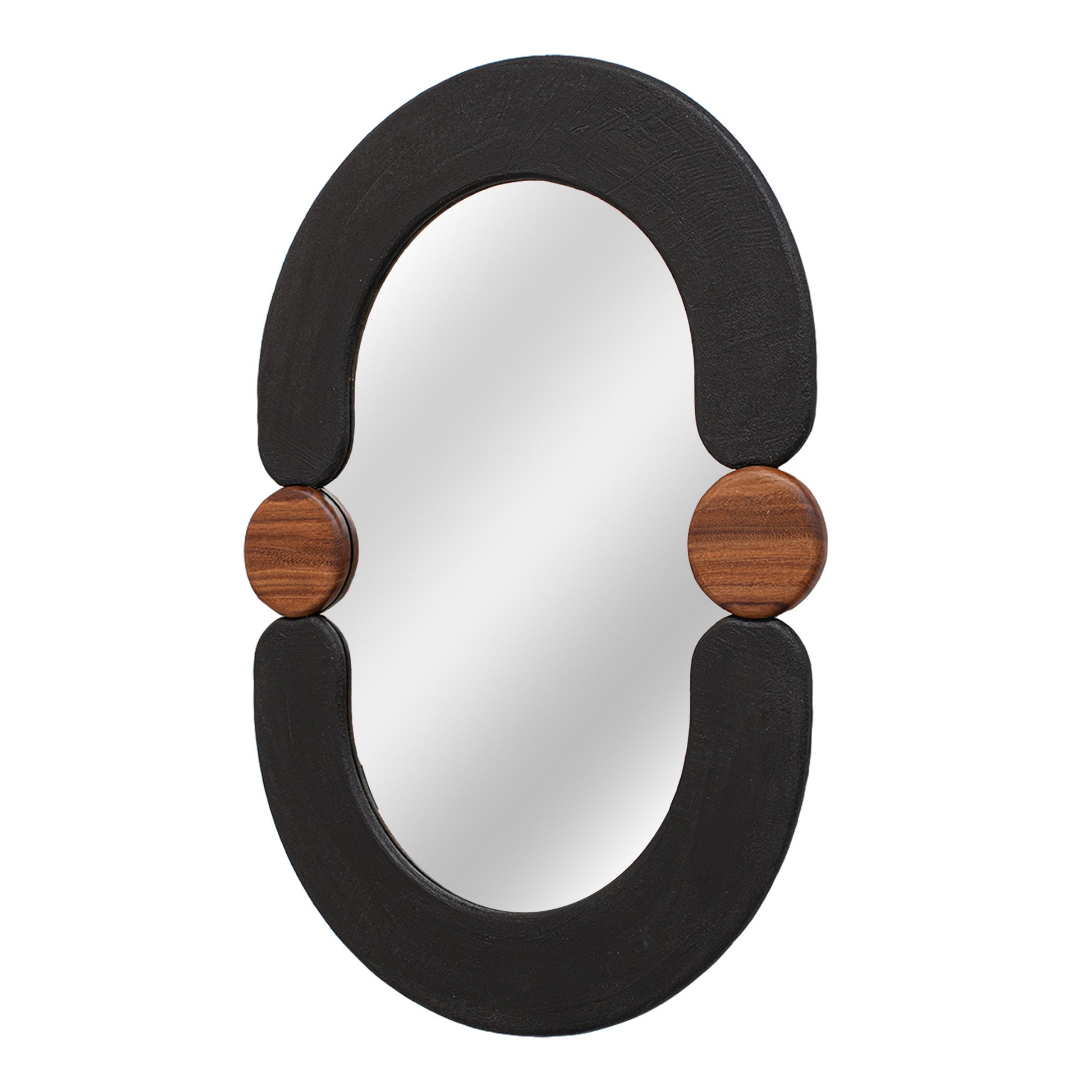Espejo de pared con estructura de madera, boleado y texturizado con apliques de parota.