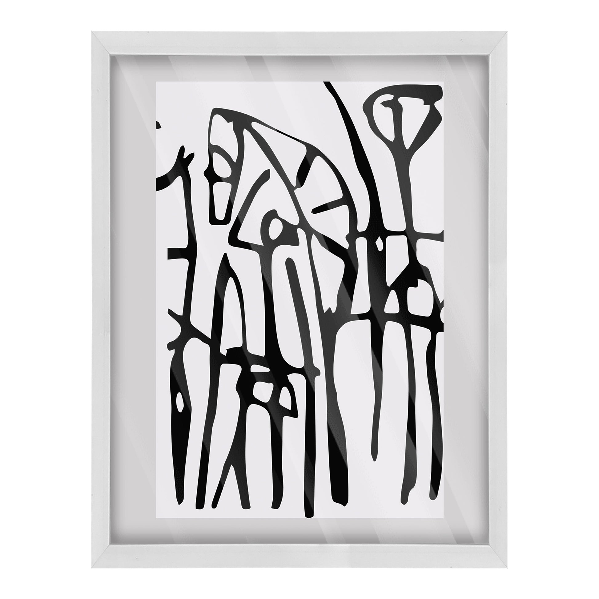 Impresión en alta definición en tela canvas de poliéster mate con respaldo de madera. Marco de poliuretano blanco. Protegido con vidrio.